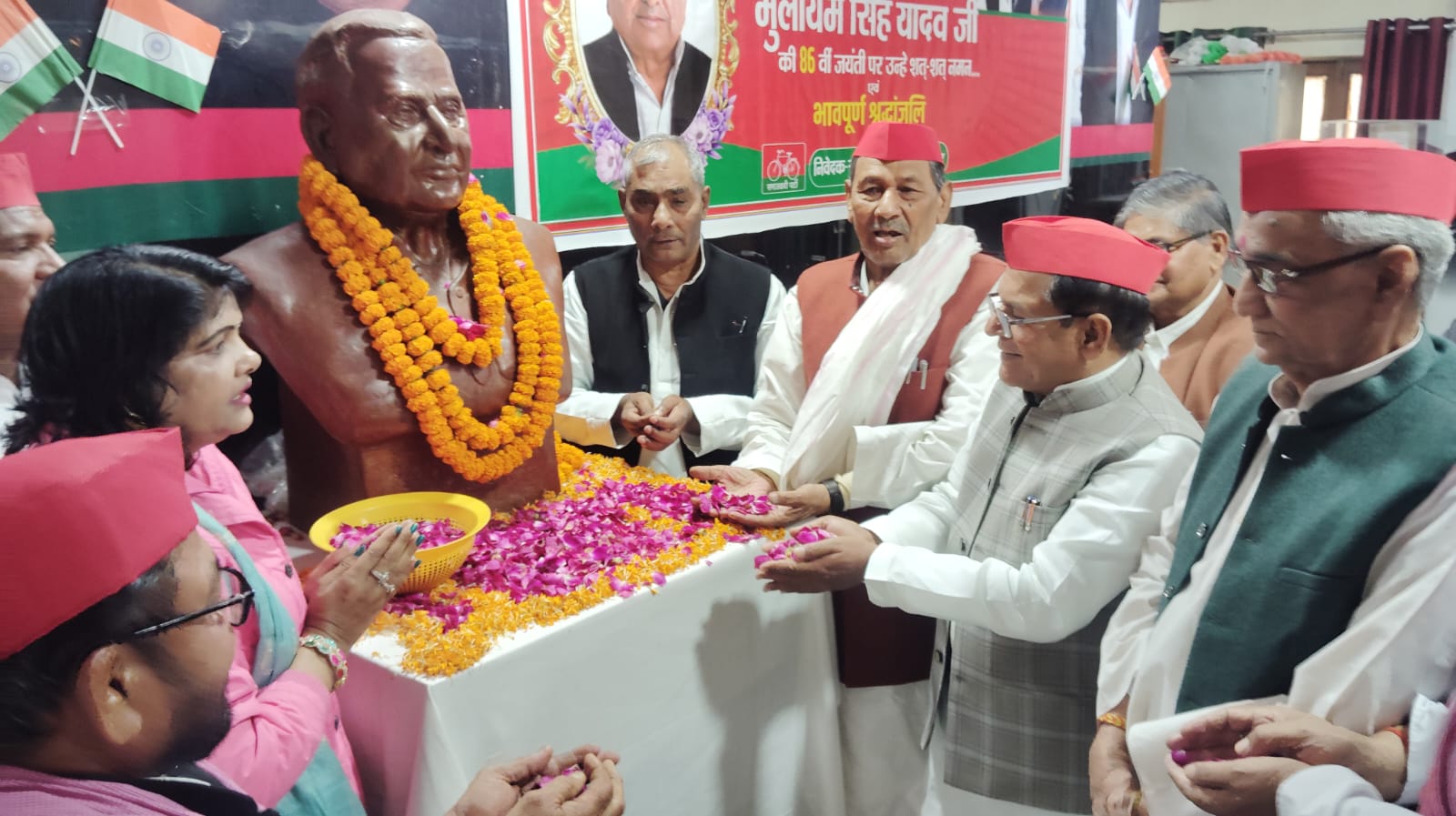 समाजवादी पार्टी कार्यालय में शनिवार को धरतीपुत्र मुलायम सिंह यादव की 86 वीं जयंती मनाई गयी।