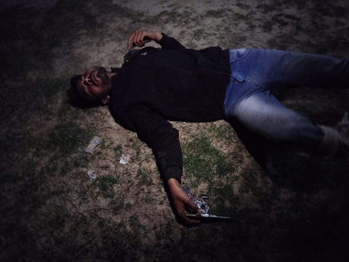 पुलिस अधीक्षक अनुराग आर्य के मुताबिक शहर कोतवाल शशिमौली पाण्डेय मय हमराह को सूचना मिली कि उपरोक्त घटनाओं को कारित करने वाले गैंग का सदस्य किसी घटना को कारित करने के उद्देश्य से सर्विस लेन कटहटा के पास से गुजरने वाले हैं। इस सूचना पर प्रभारी निरीक्षक कोतवाली शशिमौली, उप निरीक्षक राजेन्द्र प्रसाद पटेल, उप निरीक्षक अनुपम जायसवाल मय हमराह द्वारा कटहटा पर चेकिंग प्रारम्भ की गयी, समय करीब 21:55 बजे एक मोटर साइकिल सवार आता दिखाई दिया। जिसे रुकने का इशारा किया गया तो मोटर साइकिल सवार पीछे मोड़कर भागने के प्रयास में फिसलकर गिर गया। उक्त बदमाश अपने आप को पुलिस से घिरता देखकर पुलिस बल पर जान से मारने की नियत से फायरिंग करने लगा। पुलिस बल द्वारा पर्याप्त चेतावनी के बाद भी फायरिंग की गयी। जिसके पश्चात पुलिस बल आत्मरक्षार्थ नियंत्रित फायरिंग की गयी जिसमें अभियुक्त के दाहिने पैर में गोली लगी। घायल बदमाश की पहचान शोभित उर्फ कल्लू गौतम पुत्र गोविन्द्र निवासी दुधली पोस्ट झिंझाना थाना झिंझाना जनपद शामली उम्र 26 वर्ष के रुप में हुई। घायल अभियुक्त को उपचार हेतु जिला अस्पताल आजमगढ़ रवाना किया गया। अभियुक्त के कब्जे से एक तमंचा, कारतूस, बाइक आदि बरामद हुआ।