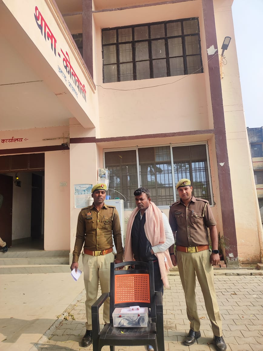शहर कोतवाली पुलिस मातबरगंज मुहल्ले में स्थित जिला महिला अस्पताल परिसर से एक चोर को गिरफ्तार की। आरोपी की निशानदेही पर अस्पताल से चोरी हुए दो सीसीटीवी कैमरा बरामद हुआ। जिसे वह घर पर छिपाकर रखा था।