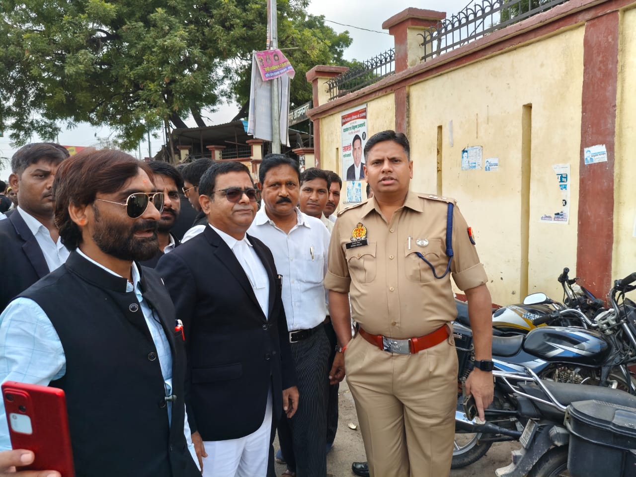 इस संबंध में दीवानी न्यायालय अभिभाषक संघ की साधारण सभा की आपात बैठक हुई।जिसकी अध्यक्षता संघ के वरिष्ठ उपाध्यक्ष सैफ उमर खान ने तथा संचालन संघ के मंत्री आनंद श्रीवास्तव ने किया बैठक में अधिवक्ता गोविंद चौहान की जमीन को विरोधियों द्वारा कब्जा किए जाने तथा इस प्रकरण में थानाध्यक्ष मेंहनगर की संदिग्ध भूमिका की कड़ी निन्दा की गई। नाराज अधिवक्ता प्रशासन विरोधी नारे लगाते हुए सड़क पर उतर गए।उसी समय पुलिस अधीक्षक हेमराज मीना वहां से गुजर रहे थे। अधिवक्ताओं को सड़क पर देखकर पुलिस अधीक्षक ने संघ के मंत्री आनंद श्रीवास्तव तथा वरिष्ठ उपाध्यक्ष सैफ उमर खान से बातचीत की और इस प्रकरण में उचित कार्रवाई का आश्वासन दिया। पुलिस अधीक्षक के आश्वासन पर सभी अधिवक्ता दीवानी न्यायालय परिसर में वापस चले गए।