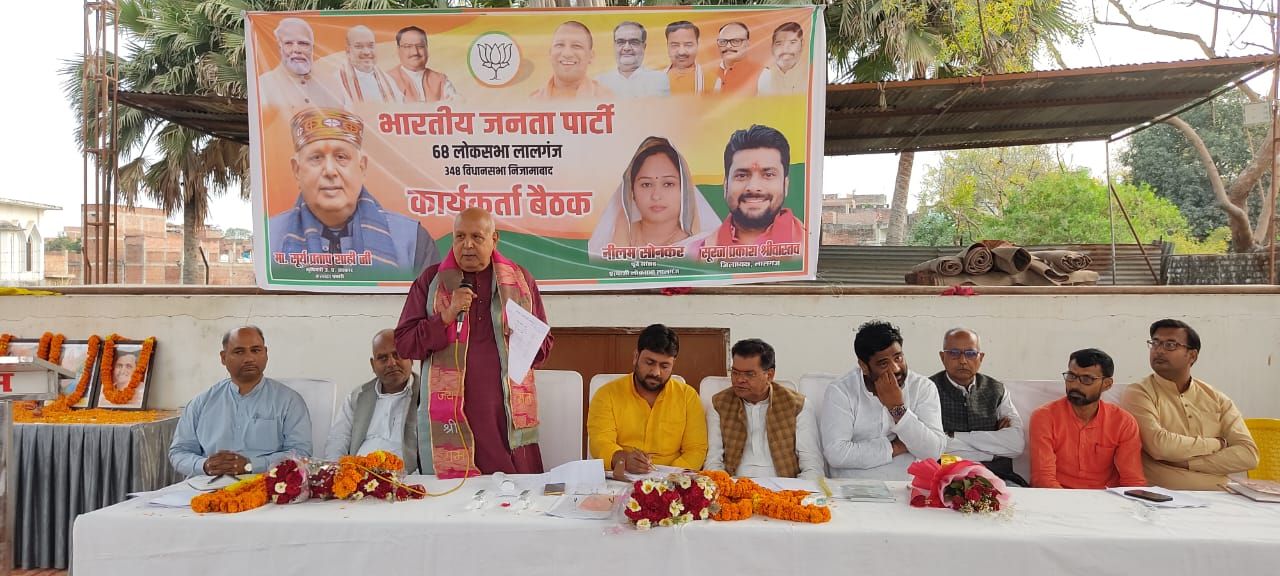 भारतीय जनता पार्टी लोकसभा लालगंज के विधान सभा निजामाबाद के सभी मंडलों के कार्यकर्ताओं की बैठक का आयोजन किया गय। जिसमें मुख्य अतिथि के रूप में यूपी के कृषि मंत्री सूर्य प्रताप शाही, विशिष्ट अतिथि के रूप में जिला अध्यक्ष सूरज प्रकाश श्रीवास्तव, लोकसभा संयोजक विनोद राय, विधान सभा प्रभारी रमाकांत मिश्र उपस्थित रहे।
