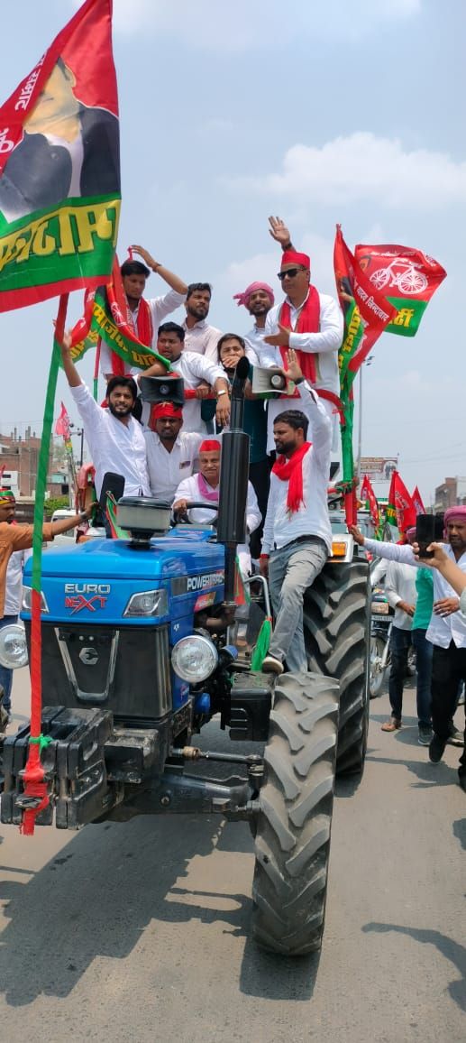 मुबारकपुर के विधायक अखिलेश यादव और मुरादाबाद के विधायक फहीम इरफ़ान बुधवार को अपने समर्थकों के साथ सठियांव से बैठौली स्थित पार्टी के कार्यक्रम स्थल तक ट्रैक्टर चलाकर पहुंचे। सपा विधायक अखिलेश यादव स्वयं ट्रैक्टर चला रहे थे। जबकि उनके समर्थक आगे आगे पार्टी का झंडा लेकर दौड़ते हुए चल रहे थे।