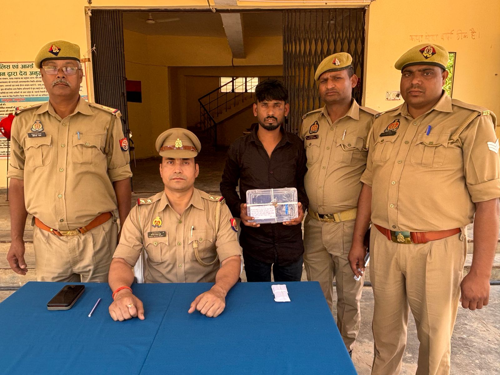 थानाध्यक्ष रामपुर बरकोनिया कमल नयन दूबे के मुताबिक गिरफ्तार आरोपी संजय हरिजन पुत्र रामकुवंर हरिजन है। वह सोनभद्र जिले के रायपुर थाने के सरईगढ़ टोला गांव का रहने वाला है। थानाध्यक्ष ने बताया कि मुखबिर के जरिए सूचना मिली कि संजय हरिजन बुधवार को सिलथम बाजार की तरफ आ रहा है। जो थाना रावर्ट्सगंज से गोवध के मुकदमें में वांछित भी है और उसकी गिरफ्तारी पर 25 हजार का इनाम घोषित है।अगर जल्दी करे तो उसे अवैध शस्त्र के साथ पकड़ा जा सकता है। इस सूचना पर थानाध्यक्ष रामपुर बरकोनिया अपनी पुलिस टीम के साथ मुखबिर खास की बताये स्थान पर पहुँचे और उसे गिरफ्तार कर लिए।