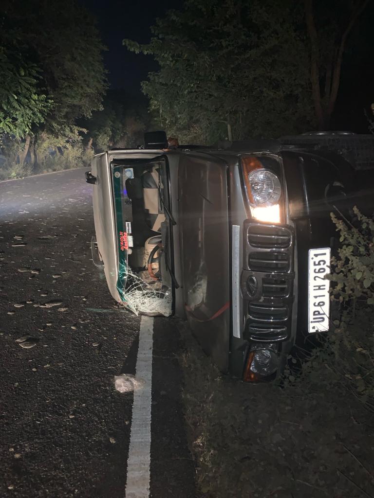 बोलेरो में सवार लोग भी हुए घायल, गाड़ी से निकलकर सभी लोग इधर उधर भागे