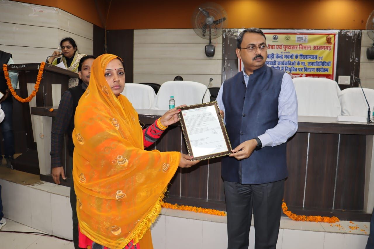 जनपद आजमगढ़ में आंगनबाड़ी सहायिका से आंगनबाड़ी कार्यकत्री पद पर कुल 165 नवचयनित अभ्यर्थियों को जिला कार्यक्रम अधिकारी हेमन्त सिंह द्वारा नियुक्ति पत्र वितरित कराया गया।