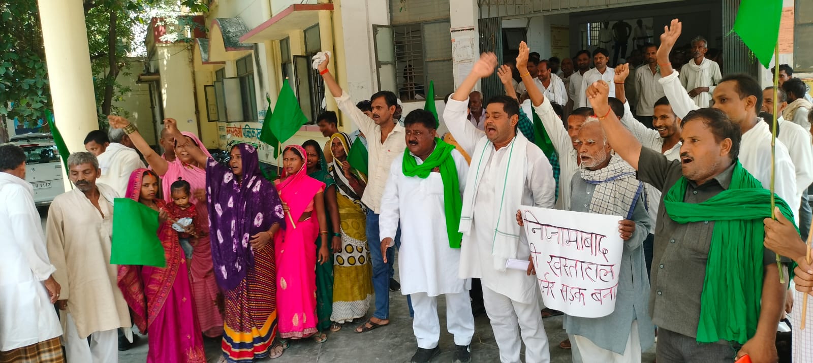 प्रदर्शनकारियों ने निज़ामाबाद की जर्जर सड़कों का निर्माण कराओ, सड़कों का निर्माण क्यों नहीं जवाब दो, जमालपुर के मुसहर समाज के पट्टों पर कब्ज़ा कराओ, जब तक दुखी किसान रहेगा, धरती पर तूफान रहेगा, लड़ेंगे जीतेंगे जैसे नारे लगाए गए।