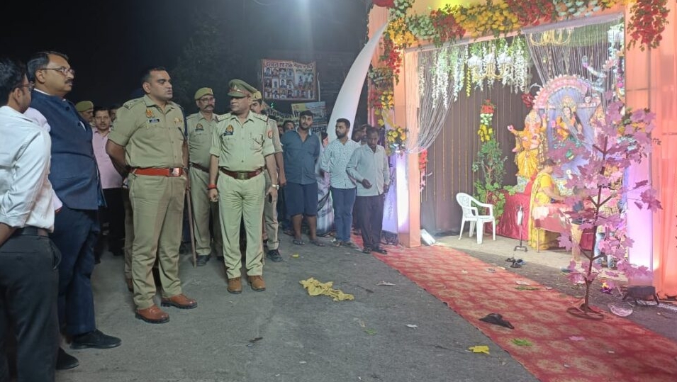 नवरात्र का पर्व धूमधाम से मनाया जा रहा है। इस दौरान क्षेत्रों में जगह जगह मां दुर्गा की प्रतिमाएं स्थापित की गयी हैं। सभी छोटे बड़े मंदिर रंग बिरंगे झालरों के झुरमुट में झिलमिला रहे हैं। सुबह और शाम को घंटा और घड़ियाल गुंज रहा है। बाहर देश से भी लोग विजया दशमी का मेला देखने के लिए जुट रहे हैं। हर तरफ खुशहाली का माहौल है। ऐसे में बेहतर कानून व्यवस्था बनाए रखने के लिए सोमवार को डीएम और एसपी क्षेत्र के फूलपुर, सरायमीर, निजामाबाद कस्बे में पैदल घूमकर कानून व्यवस्था का हाल जाना। भ्रमण के दौरान दुर्गा पंडाल का निरीक्षण तथा पंडाल पर लगे पुलिस बल को ड्यूटी के दौरान सतर्क रहने व अन्य आवश्यक दिशा निर्देश दिये। अधिकारियों ने थाना प्रभारियों से कहा कि सभी दुर्गा पूजा पंडालों के आसपास पर्याप्त संख्या में पुलिस फोर्स तैनात करें। किसी भी हाल में माहौल में खलल नहीं पैदा होना चाहिए। इस अवसर पर एसपी सिटी शैलेंद्र लाल, एसपी ग्रामीण अरुण कुमार दीक्षित, क्षेत्र के सीओ और थानाध्यक्ष आदि मौजूद रहे।