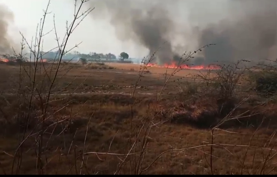 प्रत्यक्षदर्शियों के अनुसार, दोपहर के समय अचानक खेतों की ओर से धुआं उठता दिखाई दिया। जब तक लोग कुछ समझ पाते, तब तक आग तेजी से फैल चुकी थी। खेतों में पहले से हार्वेस्टर द्वारा गेहूं की कटाई की जा चुकी थी और डंठल भूसा बनाने के लिए पड़ा हुआ था। सूखा डंठल आग के संपर्क में आते ही तेजी से धधक उठा और कुछ ही देर में सैकड़ों बीघा क्षेत्र जलने लगा। आग की सूचना मिलते ही आसपास के गांवों के किसान और ग्रामीण मौके पर पहुंच गए और आग बुझाने में जुट गए। लोग बाल्टी, पानी के टैंकर और मिट्टी डालकर आग पर काबू पाने का प्रयास करते रहे, लेकिन तेज हवा और सूखी फसल के कारण आग लगातार फैलती रही। किसानों के लाख प्रयास के बावजूद आग पर नियंत्रण नहीं पाया जा सका। घटना की सूचना दमकल विभाग को दी गई, लेकिन दमकल की गाड़ी करीब दो घंटे बाद मौके पर पहुंची। तब तक अधिकांश क्षेत्र में पड़ा गंठल जलकर राख हो चुका था। दमकल कर्मियों ने पहुंचकर आग बुझाने की कोशिश की, लेकिन तब तक काफी नुकसान हो चुका था। इस भीषण अग्निकांड में दो किसानों राममिलन और संदीप के इंजन में भी आग लग गई, जिससे उनके कृषि उपकरणों को भी नुकसान पहुंचा। मौके पर 112 नंबर पुलिस भी पहुंची और स्थिति को संभालने का प्रयास किया। इस घटना से क्षेत्र के सैकड़ों किसानों को भारी आर्थिक क्षति हुई है। जिन किसानों ने अभी तक भूसा नहीं बनवाया था, उनका पूरा डंठल जल गया, जिससे पशुओं के चारे का गंभीर संकट खड़ा हो गया है। अपनी साल भर की मेहनत को जलते हुए देखकर किसान बेबस नजर आए और कई किसान हाय-हाय करते रहे। ग्रामीणों का कहना है कि यदि समय पर दमकल पहुंच जाती तो नुकसान को काफी हद तक कम किया जा सकता था। उन्होंने प्रशासन से मांग की है कि नुकसान का आकलन कर प्रभावित किसानों को शीघ्र उचित मुआवजा दिया जाए, ताकि इस संकट की घड़ी में उन्हें राहत मिल सके। यह घटना एक बार फिर ग्रामीण क्षेत्रों में अग्निशमन व्यवस्था की धीमी गति और संसाधनों की कमी को उजागर करती है, जिससे किसानों में नाराजगी भी देखी जा रही है।