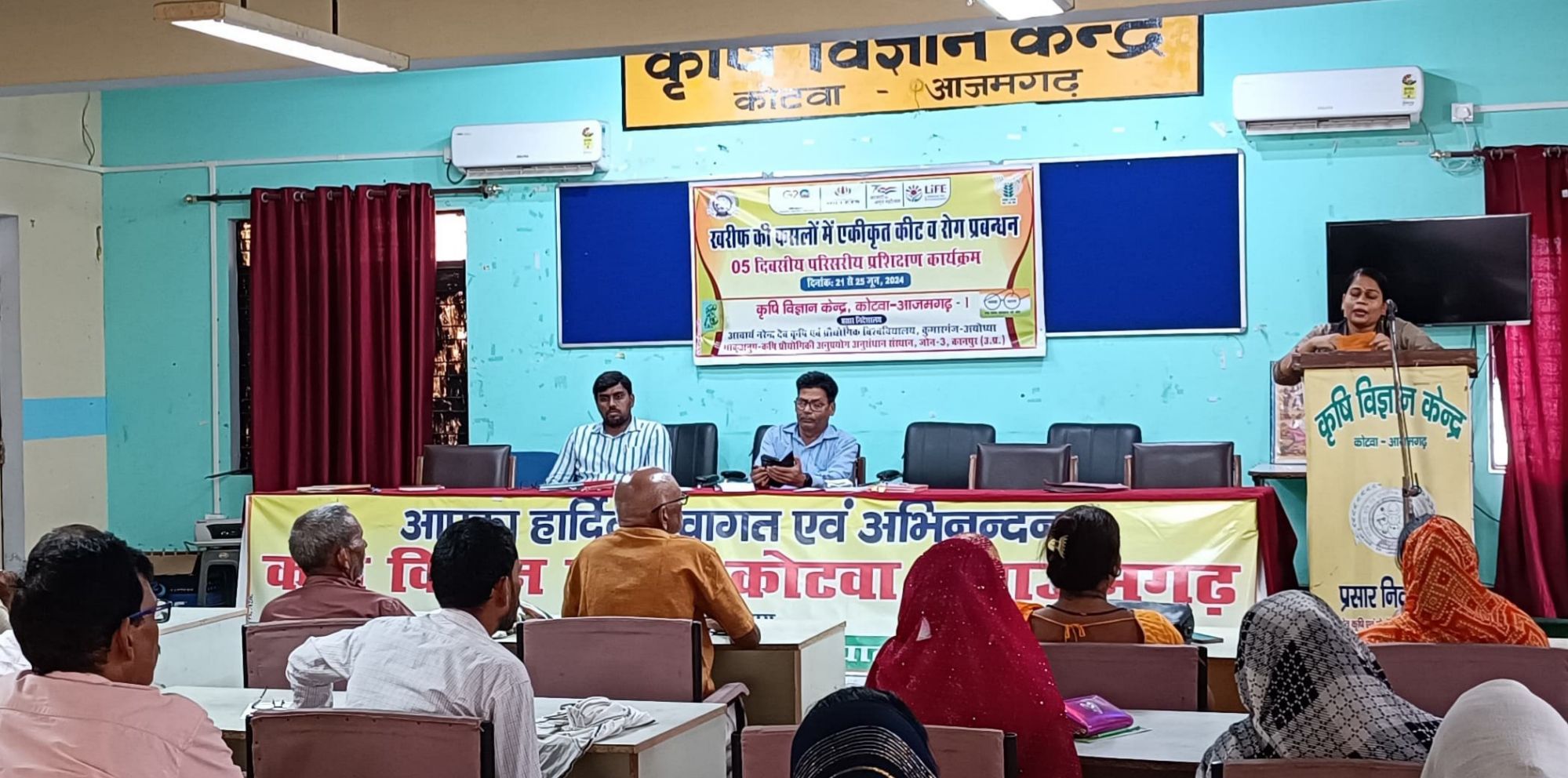 आचार्य नरेन्द्र देव कृषि एवं प्रौद्योगिक विश्वविद्यालय कुमागंज अयोध्या से संचालित कृषि विज्ञान कोटवा आजमगढ़ – द्वारा “खरीफ फसलों में एकीकृत कीट व रोग प्रबंधन” पर पांच दिवसीय परिसरीय प्रशिक्षण का आयोजन किया गया। जिसमें विभिन्न विकासखंडों के कुल 25 चयनित कृषकों ने प्रतिभाग किया। केन्द्र प्रभारी प्रो. डी के सिंह ने बताया कि आज भी हमारा देश दलहन की उत्पादकता एवं उत्पादन में काफी पीछे है और दलहन की आपूर्ति हेतु हमारे देश को दलहन की बड़ी मात्रा का आयात करना पड़ता है।