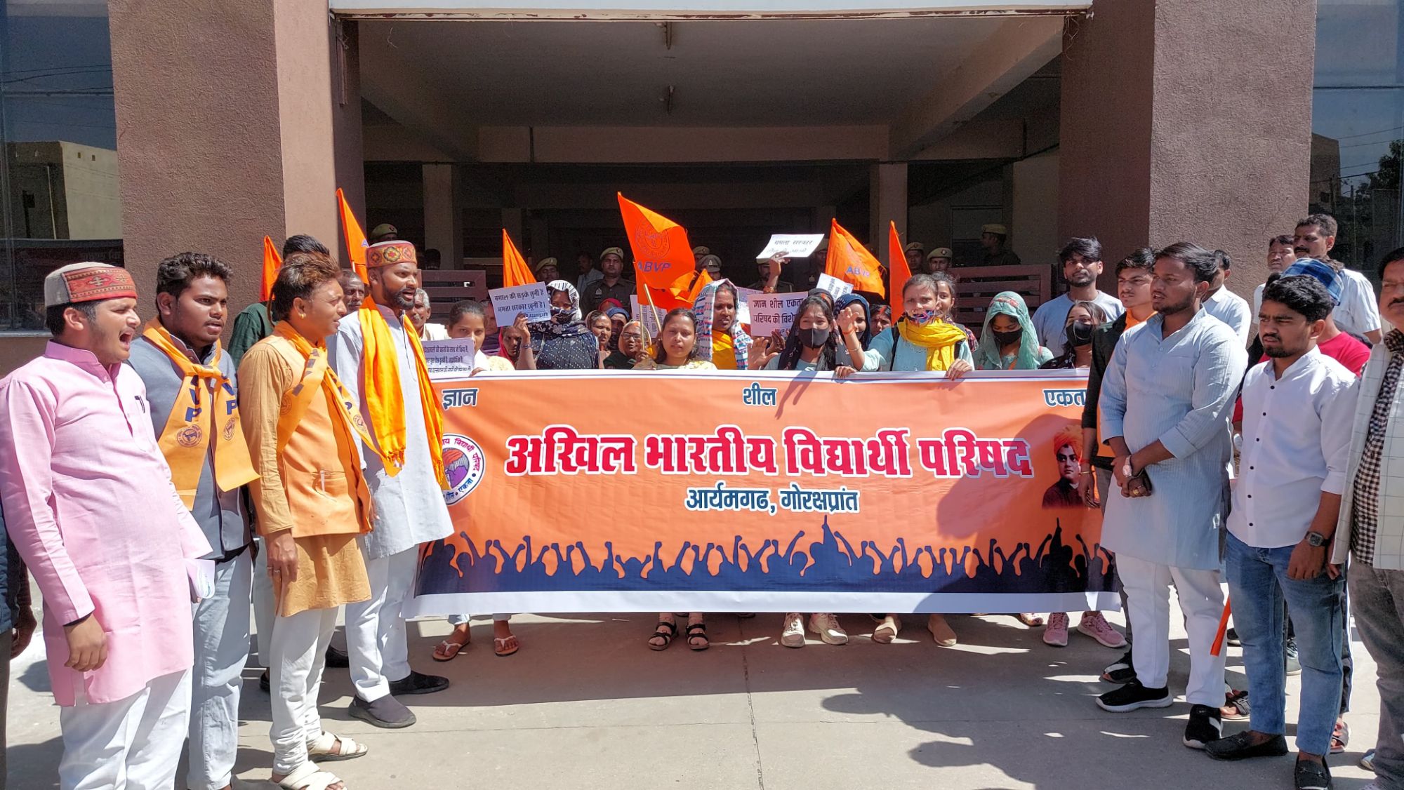अखिल भारतीय विद्यार्थी परिषद (अभाविप) आजमगढ़ जिले के कार्यकर्ताओं द्वारा पश्चिम बंगाल के संदेशखाली में हो रहे महिला विरोधी कुकृत्य के विरुद्ध डीएवी पीजी कॉलेज के गेट पर एकत्रित होकर पदयात्रा करते हुए कलेक्ट्रेट चौराहे पर विरोध प्रदर्शन कर ममता बनर्जी का पुतला दहन किया गया।