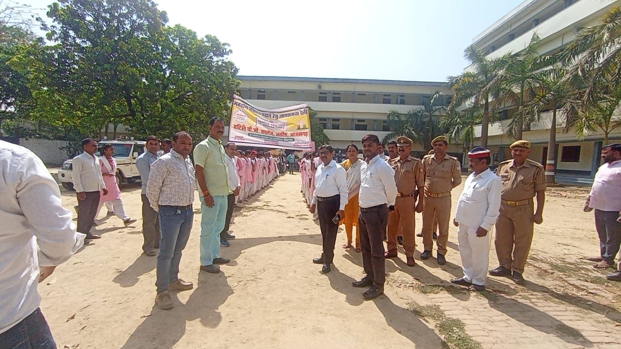 जैसे सारे काम छोड़ दो, सबसे पहले वोट दो।, पहले मतदान उसके बाद जल पान आदि नारा शामिल था। रैली के बाद महाविद्यालय में संगोष्ठी हुई। उपजिलाधिकारी प्रेमचंद मौर्या ने छात्राओं को मतदान की शपथ दिलाते हुए कहा कि हमें अपने क्षेत्र में शत् प्रतिशत मतदान करना है। पहले स्वयं मतदान करें, उसके बाद अपने आसपास परिजनों को मतदान के लिए प्रोत्साहित करें। लोकतंत्र के इस पर्व को ऐतिहासिक बनाने के लिए 25 मई को मतदान अवश्य करें। तहसीलदार अरुण कुमार वर्मा ने बताया कि मतदान के माध्यम से हम एक स्वच्छ लोकतंत्र पर्व का उत्सव मना करके देश में अच्छी सरकार बना सकते हैं। महाविद्यालय के व्यवस्थापक प्रदीप सोनी ने कार्यक्रम को संबोधित करते हुए कहा कि संविधान में हमें अपना मताधिकार करने का जो अधिकार प्राप्त है। यह हमारे लिए गौरव की बात है। हम भारत देश के निर्माता हैं। अपने मताधिकार की बदौलत हम देश की दशा और दिशा बदल सकते हैं। हमें सोच समझकर सच्चे व्यक्ति का चुनाव करना है। साथ ही लोकतंत्र के इस पर्व में बढ़ चढ़कर हिस्सा लेने की जरूरत है। महाविद्यालय के प्राचार्य डॉक्टर अनिल पाण्डेय ने कार्यक्रम में हिस्सा लेने वाले सभी अतिथियों का आभार व्यक्त किया। इस अवसर पर डॉक्टर प्रीति गुप्ता, मातूभीख मिश्रा, शिवम चौरसिया, राकेश पाण्डेय, रिंकू सिंह, नितिन, विनीता पाण्डेय सहित अन्य लोग मौजूद रहे।