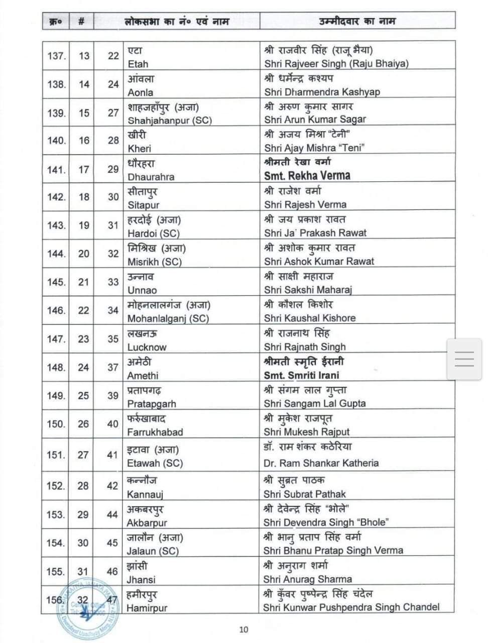 लोक सभा चुनाव के लिए भारतीय जनता पार्टी ने अपने उम्मीदवारों की पहली लिस्ट जारी कर दी है। शनिवार को जारि की गयी सूची के मुताबिक प्रधानमंत्री नरेंद्र मोदी समेत 195 को टिकट दिया गया है। इसमें लालगंज से नीलम सोनकर और आजमगढ़ से दिनेश लाल यादव निरहुआ का भी नाम शामिल है।