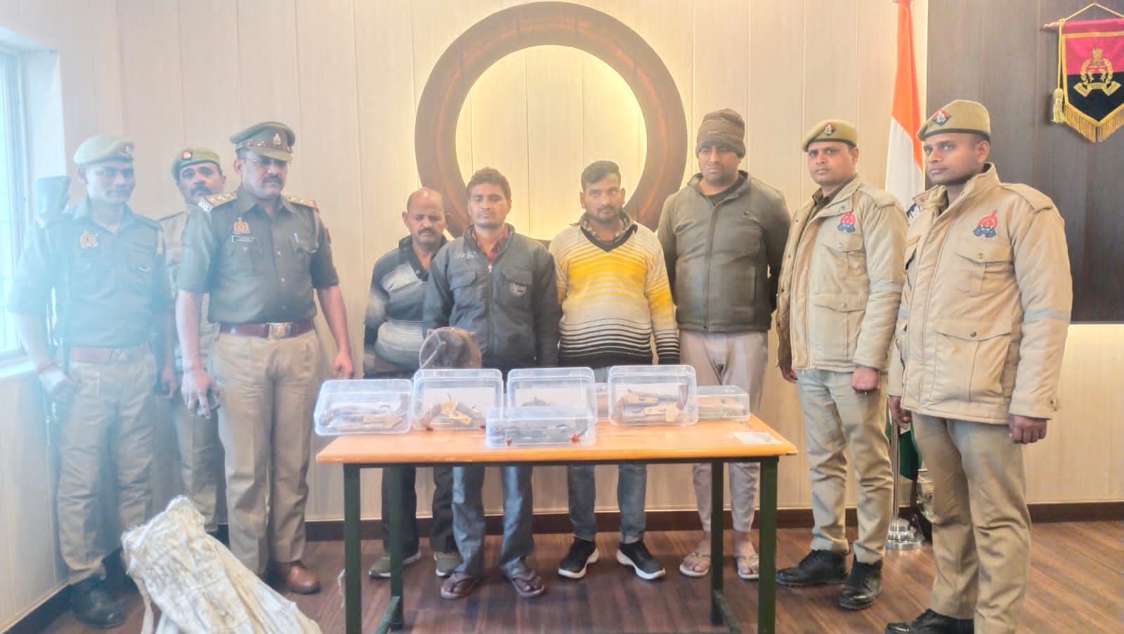 पुलिस के मुताबिक इनके अड्डे से 9 तमंचा 315 बोर, 2 अर्धनिर्मित तमंचा 315 बोर, 1 जिंदा कारतूस 315 बोर, असलहा बनाने के उपकरण (विभिन्न साईज की 6 रेती, 3 सुम्भी लोहे, 3 लोहे की पाईप, 20 लोहे की कील, 2 छेनी लोहे की, 7 प्रिंग लोहे की, 2लोहे की सरसी, 1 लोहे का पिलास, लोहे की चादर के टुकड़े, 6 लोहे का फर्मा, 01 तार लोहे का व भट्ठी आदि शामिल है।