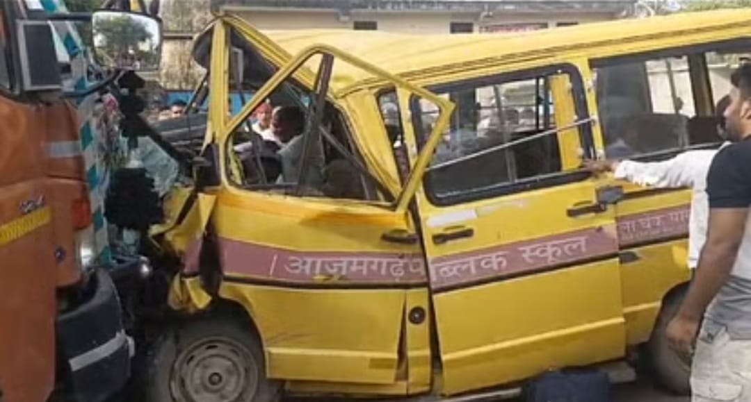लखनऊ-बलिया मुख्य मार्ग पर सरायमीर थाना क्षेत्र के पवई लाडपुर गांव में स्थित क्रय केंद्र के सामने सोमवार की सुबह ओवरटेक करने के चक्कर में स्कूली बस ट्रेलर से टकरा गई। इस घटना में बस चालक और बस में सवार छह बच्चे घायल हो गए। उन्हें उपचार के लिए अस्पताल में भर्ती कराया गया है।