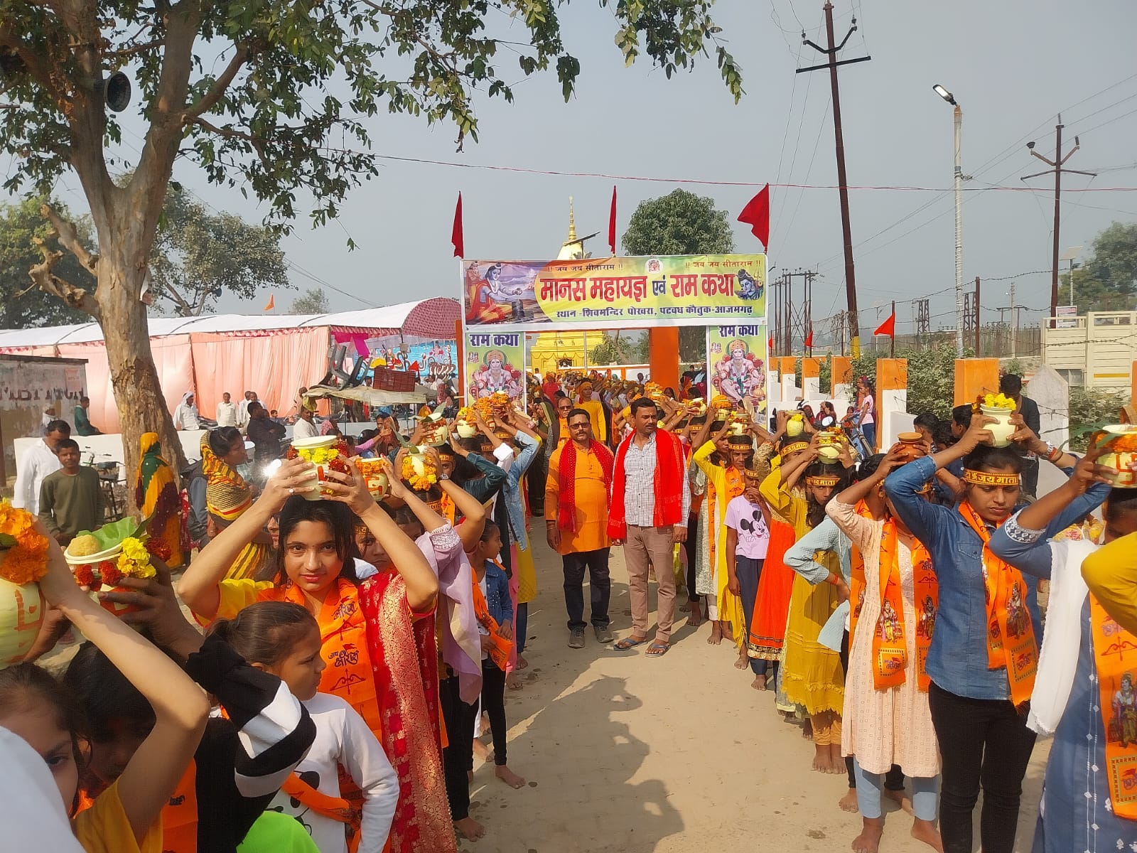 बिलरियागंज ब्लाक क्षेत्र के पटवध कौतुक गांव में स्थित प्रसिद्ध शिव मंदिर पर श्री राम कथा मानस यज्ञ का आयोजन किया गया है। शुक्रवार की सुबह 7:00 बजे से कलश पूजन के उपरांत 501 कन्याओं ने सर पर कलश रखकर प्राचीन शिव मंदिर पटवध र्कौतुक पोखरा पहुंची। वहां से जल लेकर हरहर महादेव, जय श्री राम के घोष के साथ पटवध गांव होते हुए यज्ञ स्थल पर पहुंचे। इस दौरान गाजा-बाजा, हाथी और घोड़ा के साथ काफी संख्या में लोग जयकारा लगा रहे थे। इस प्रकार का नारा लगाते हुए लोग पुरे क्षेत्र का भ्रमण करते हुए चांदपुर, मानपुर, सरैया बाजार होते हुए यज्ञ स्थल पर पहुंचकर कन्याओं द्वारा कलश रखा गया। मंदिर प्रांगण में काफी भीड़ में हर हर महादेव, जय श्री राम के जयकारों से पूरा प्रांगण भक्ति मय हो गया। लोगों ने खूब जमकर जयकारे लगाये। यज्ञ स्थल सुबह से फेरी जयकारों के साथ खुब लगाये। श्रीकांत पांडेय द्वारा यज्ञ पूजन कराया गया। यज्ञ जजमान सुदेश्वरी दत्त उपाध्याय उर्फ रमन्टू उपाध्याय रहे। शाम 7 बजे से रामकथा 10 बजे रात्री तक चलेगी। मानस वक्तागण आजमगढ़ से ललित नारायण गिरी व काशी क्षेत्र के प्रभाकर त्रिपाठी द्वारा प्रवचन किया जाएगा।