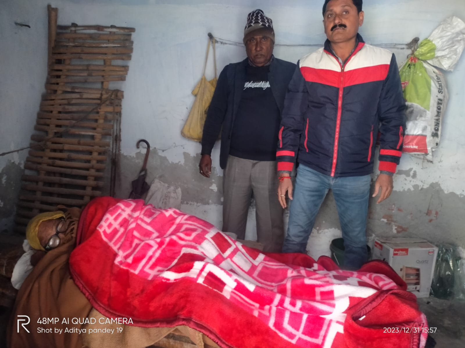 रामाश्रय राय सभापति व युवा समाजसेवी ने चारपाई पर पड़े संत-महात्मा को कंबल दिया। समाजसेवी के इस प्रयास की सराहना हो रही है।