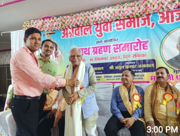 अग्रवाल युवा समाज का शपथ ग्रहण समारोह श्री अग्रवाल धर्मशाला पुरानी कोतवाली आजमगढ़ में संपन्न हुआ। मुख्य अतिथि के रुप में पुष्पदंत जैन उपाध्यक्ष व्यापारी कल्याण बोर्ड उत्तर प्रदेश दर्जा प्राप्त राज्य मंत्री रहे। जबकि विशिष्ट अतिथि शसुदर्शन दास अग्रवाल रहे। कार्यक्रम की अध्यक्षता अतुल कुमार अग्रवाल मुन्ना बाबू ने किया।