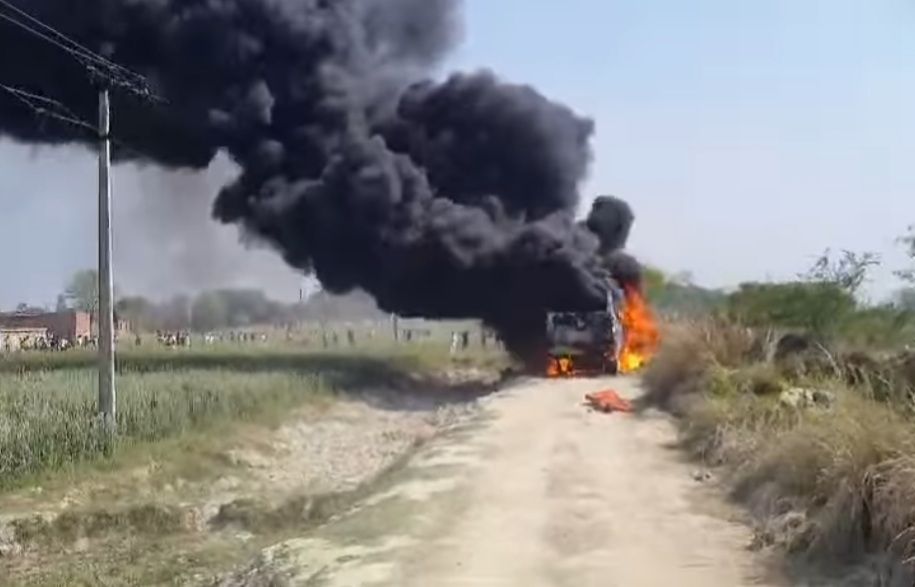 जिले के मरदह गांव में सोमवार को हाईटेंशन तार के स्पर्श करने से बस में आग लग गयी। घटना के समय बस में करीब 30 से अधिक लोग बैठे हुए थे। बस बारातियों को लेकर जा रही थी। इस घटना में कयी लोगों के मरने का अनुमान लगाया जा रहा। मौके पर राहत और बचाव कार्य जारी है।