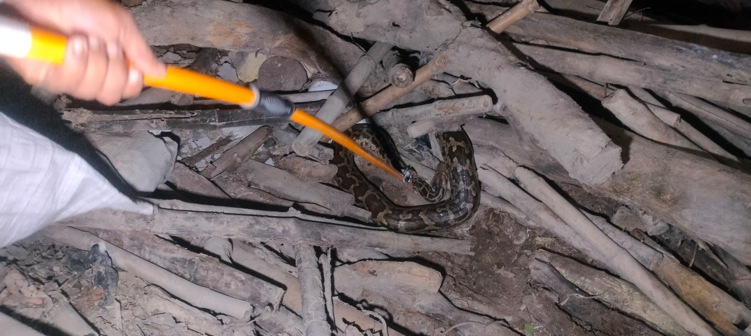 निजामाबाद कस्बा में स्थित थाना के पीछे वाले मुहल्ले में रवी पाठक के घर के बगल में एक बंद कमरे में बांस बल्ली रखी हुई थी। उसमें बुधवार को सुबह दस बजे ग्रामीणों ने एक अजगर को देखा, तो उसे देखने के लिए आस पास के लोगों की भीड़ जुट गई श। थोड़ी देर बाद एक और अजगर वहीं पर दिखने लगा तो ग्रामीणों ने इसकी सूचना वन विभाग को दिया। वन विभाग की दो सदस्यीय टीम सुरेन्द्र चौहान के नेतृत्व में सांप पकड़ने के उपकरण के साथ उक्त स्थान पर पहुंचकर लोगों की मदद से एक अजगर को पकड़ लिए और दूसरे को पकड़ने के समय वह बिल के रस्ते से तमसा नदी के किनारे सरपत के झुंड में जाकर कहीं भाग गया। जबकि वन विभाग की टीम और स्थानीय लोगों ने काफ़ी खोजबीन किया, लेकिन दूसरा अजगर भागने में कामयाब हो गया। जिसके कारण आस पास निवास करने वाले लोगों को डर सता रहा है कि कहीं अजगर रात में कोई अप्रिय घटना न कर दे। पकड़े गए अजगर को वन विभाग की टीम ने बताया कि इसे विभाग के अधिकारियों के निर्देश पर किसी जंगल में छोड़ दिया जाएगा।
