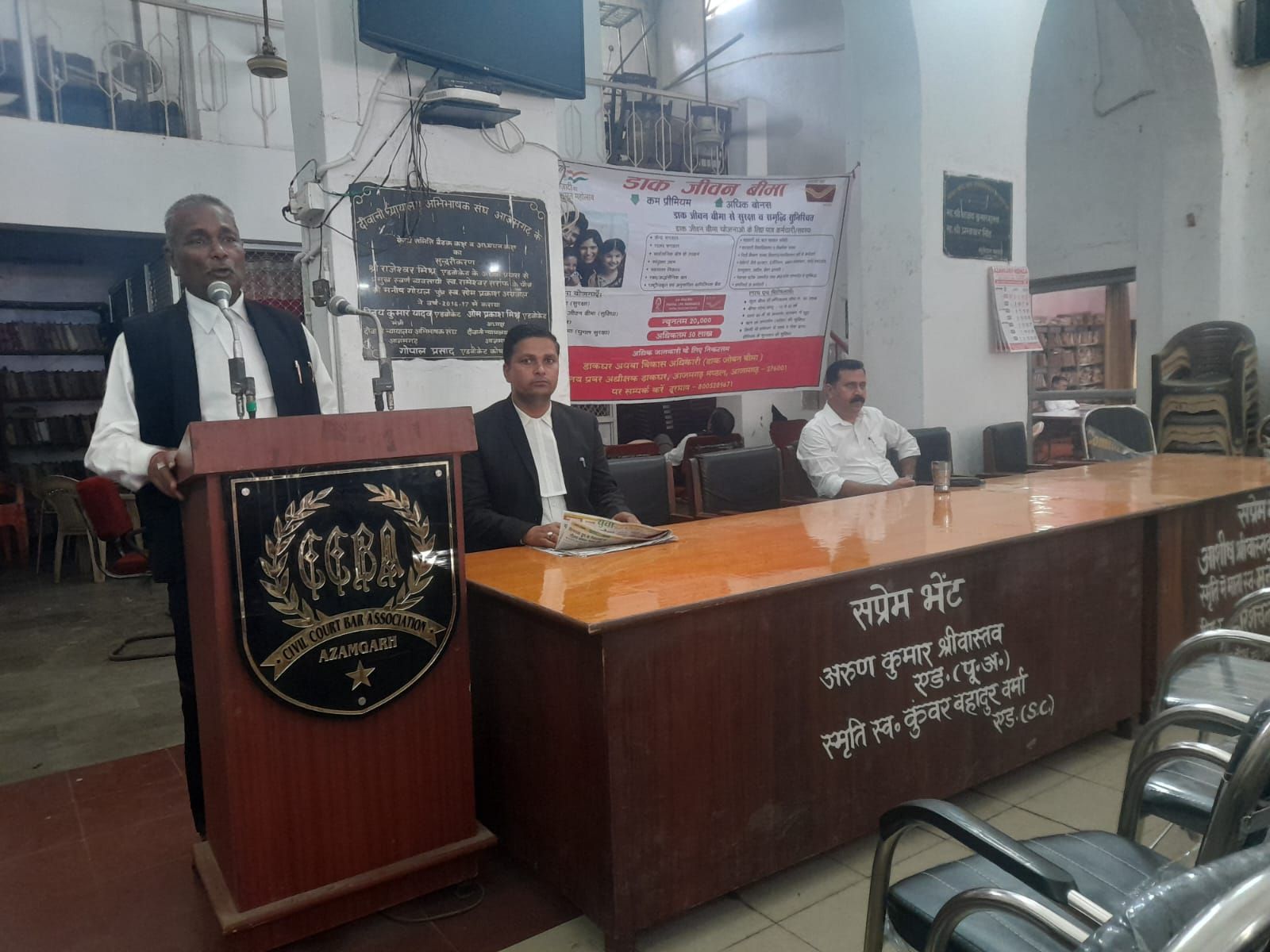 दीवानी बार एसोसिएशन के संघ भवन में सोमवार को भारतीय डाक विभाग की तरफ से डाक जीवन बीमा की योजनाओं को लेकर एक जागरूकता शिविर का आयोजन किया गया। जिसमें विभाग से आए स्टाफ द्वारा विभिन्न बीमा योजनाओं के लाभ के बारे बताया गया। शिविर को संबोधित करते हुए प्रवर अधीक्षक डाकघर अखिलेश कुमार ने कहा कि डाक विभाग द्वारा 10 जुलाई तक यह अभियान चलेगा। जिसमें सरकारी कर्मचारियों के अलावा पंजीकृत अधिवक्ता, डाक्टर व ग्रेजुएशन अथवा इससे समकक्ष डिग्री धारकों को बीमा योजनाओं से आच्छादित किया जा सकता है। इसके लिए उन्हें आधार व पैनकार्ड के साथ सक्षम डिग्री का प्रमाणपत्र प्रस्तुत करना होंगा। शिविर की अध्यक्षता दीवानी बार एसोसिएशन के अध्यक्ष अशोक कुमार पांडे ने तथा संचालन संघ किस्सा मंत्री राम नारायण राय ने किया। इस दौरान डाक विभाग के कर्मचारी अखिलेश सिंह, अजीत मौर्य, सत्यम सिंह, सूर्यप्रकाश यादव,आकाश साव आदि उपस्थित रहे।