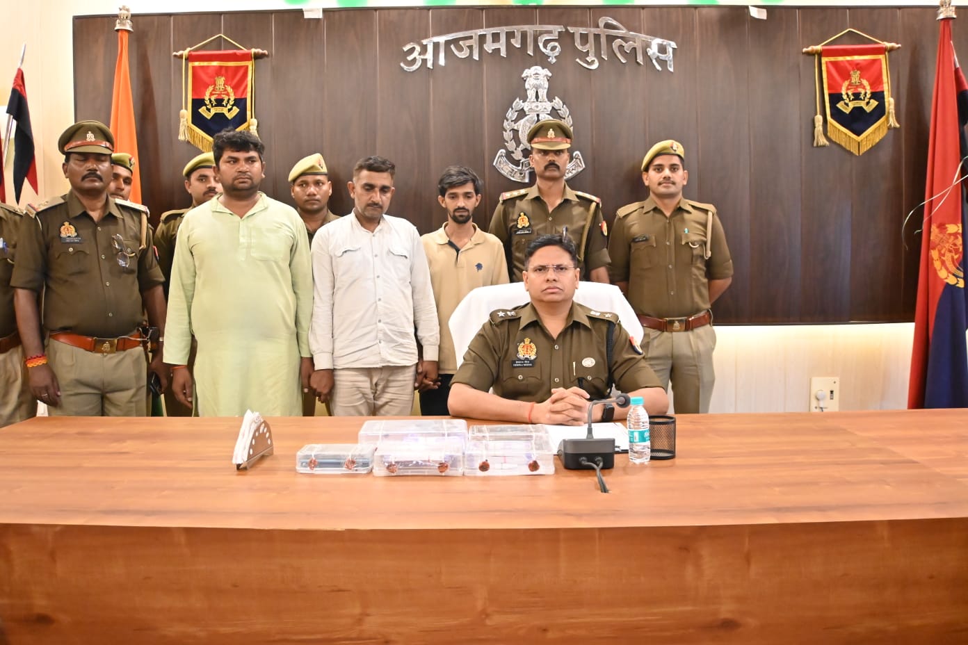 पुलिस अधीक्षक हेमराज मीना के अनुसार गिरफ्तार किए गये अपराधियों में लखनऊ जिले के रहिमाबाद थाना क्षेत्र के भावा खेड़ा गांव निवासी हसमत पुत्र स्व. अलई अहमद, इसी जिले के पारा थाना क्षेत्र के मोहान रोड गांव निवासी महेन्द्र कुमार यादव पुत्र स्व. रमेश चन्द्र यादव और आजमगढ़ जिले के फूलपुर कोतवाली क्षेत्र के सतुवहिया गांव निवासी मोहम्मद नासीर पुत्र स्व. सहाबुद्दीन का नाम शामिल है। पुलिस अधीक्षक ने बताया कि सोमवार को कोतवाल फूलपुर शशिचंद्र चौधरी मुखबिर की सूचना पर फूलपुर कोतवाली क्षेत्र के सदरपुर बरौली गांव में स्थित दुर्वासा धाम गेट के पास खड़े इन तीनों तस्करों को गिरफ्तार कर लिए। तलाशी के दौरान इन तीनों के कब्जे से एक लाख रुपये नकली नोट बरामद हुआ। पूछताछ के दौरान आरोपियों ने बताया कि यह लोग यह रुपये त्यौहार को देखते हुए बाजार में चलाने के लिए लाए थे।
