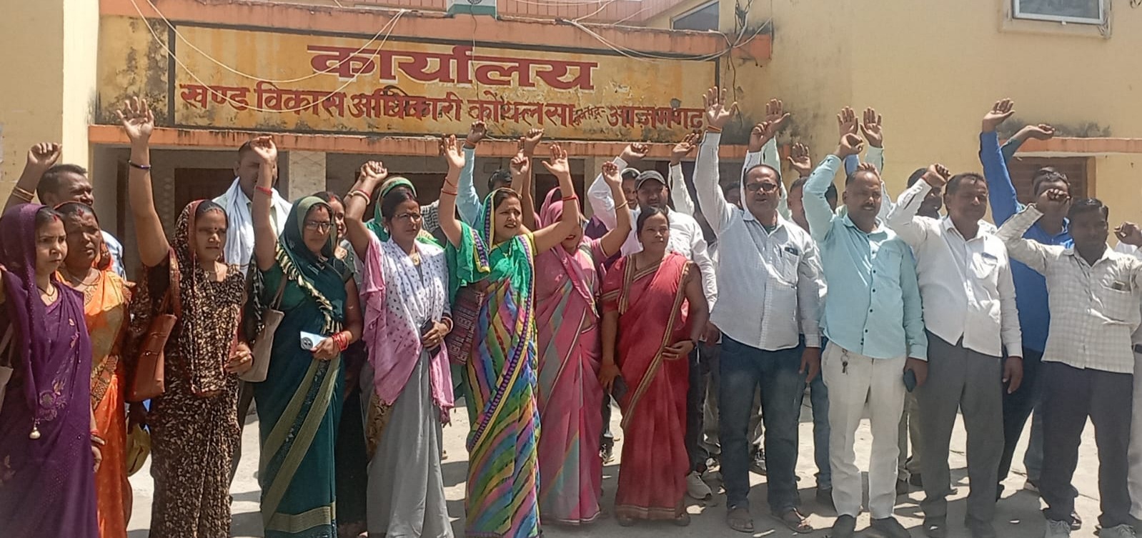 बूढनपुर तहसील क्षेत्र के विकास खण्ड कोयलसा में ग्राम रोजगार सेवक संघ के पदाधिकारी ने मानदेय के भुगतान में विसंगति एवं शासनादेश की अवहेलना करने के खिलाफ ब्लाक मुख्यालय पर पहुंचकर जोरदार प्रदर्शन किए। सभी का नेतृत्व ग्रामीण रोजगार सेवक संघ के जिलाध्यक्ष प्रदीप सिंह कर रहे थे।