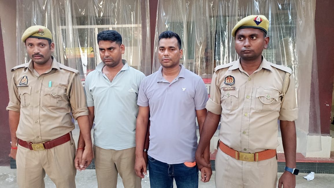 पुलिस के मुताबिक 2० जून को वादी मुकदमा कैलाश प्रजापति पुत्र राधेश्याम प्रजापति निवासी ग्राम हुसामपुर बडागांव थाना निजामाबाद ने थाना निजामाबाद पर लिखित तहरीर दिया कि दिनांक 28.03.24 को पुलिस अधीक्षक कार्यालय आजमगढ़ में अपने विपक्षी से जमीनी विवाद के सम्बन्ध में प्रार्थना पत्र दिया था। जिसके अगले दिन दो सिपाही वर्दी में घर पर आये और कहे कि जो प्रार्थना पत्र दिये हो उसी की जाँच में हम पुलिस वाले आये हैं। एक के नेम प्लेट पर अजीत कुमार यादव तथा दुसरे के नेम प्लेट पर सत्यदेव पाल लिखा हुआ था। वादी मुकदमा से विपक्षी के उपर मुकदमा लिखवाने के नाम पर ज्यादा पैसे की मांग करते हुए वादी मुकदमा से डरा धमका कर जबरन 6000 रुपये ले लिए। पुलिस केस दर्ज कर जांच पड़ताल में जुट गयी। शुक्रवार को निजामाबाद रेलवे क्रासिंग के पास से आरक्षी अजीत कुमार यादव पुत्र विश्वनाथ यादव ग्राम टेकारी धर्मशाला थाना चोलापुर जनपद वाराणसी उम्र 30 वर्ष नियुक्ति स्थान FIR सेल पुलिस कार्यालय आजमगढ़ और आरक्षी सत्यदेव पाल पुत्र सभापति पाल निवासी अड़ियार थाना सुरेही जनपद जौनपुर उम्र 30 वर्ष नियुक्ति स्थान शिकायत प्रकोष्ठ पुलिस कार्यालय जनपद मऊ को गिरफ्तार कर जेल भेजवा दिया।